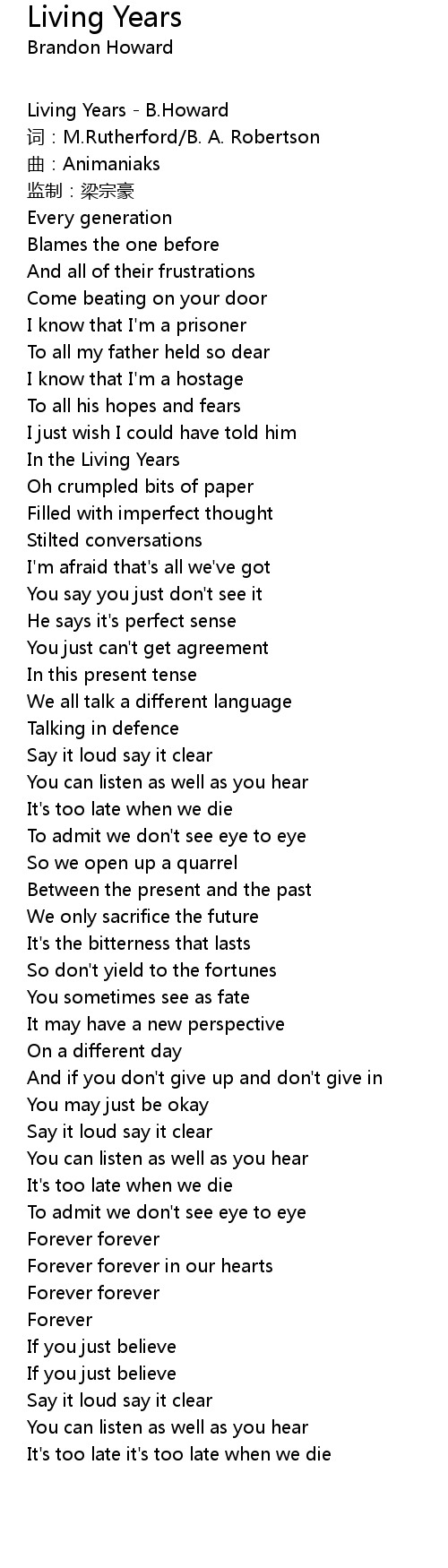 | Living Years - B.Howard | |