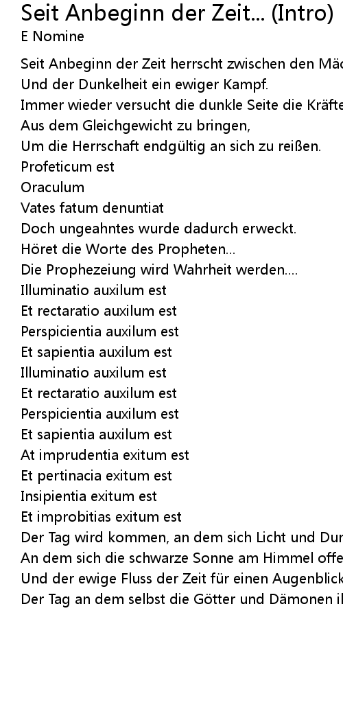 | Song | Seit Anbeginn der Zeit... (Intro) |