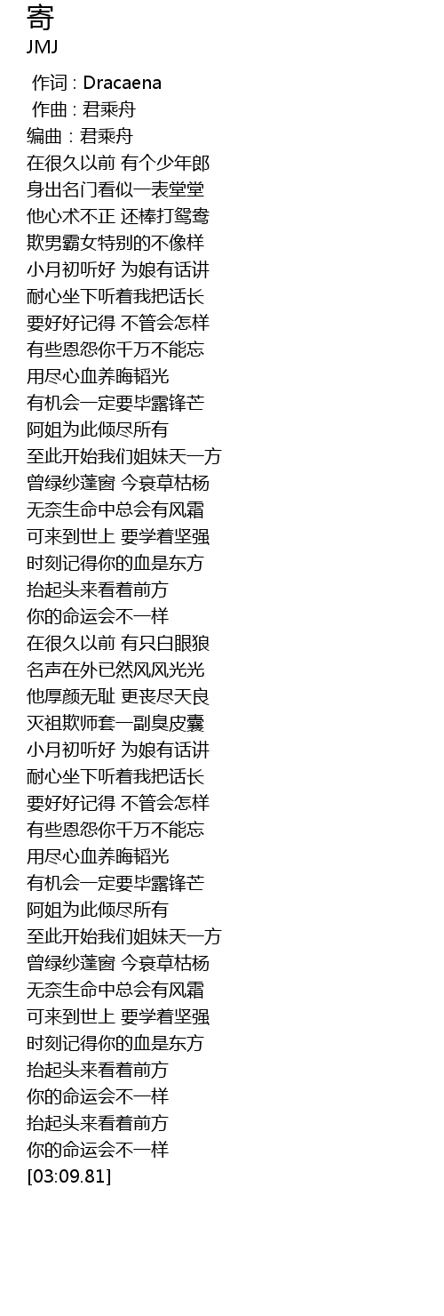 | [03:06.19] | nǐ de mìng yùn huì bù yí yàng |