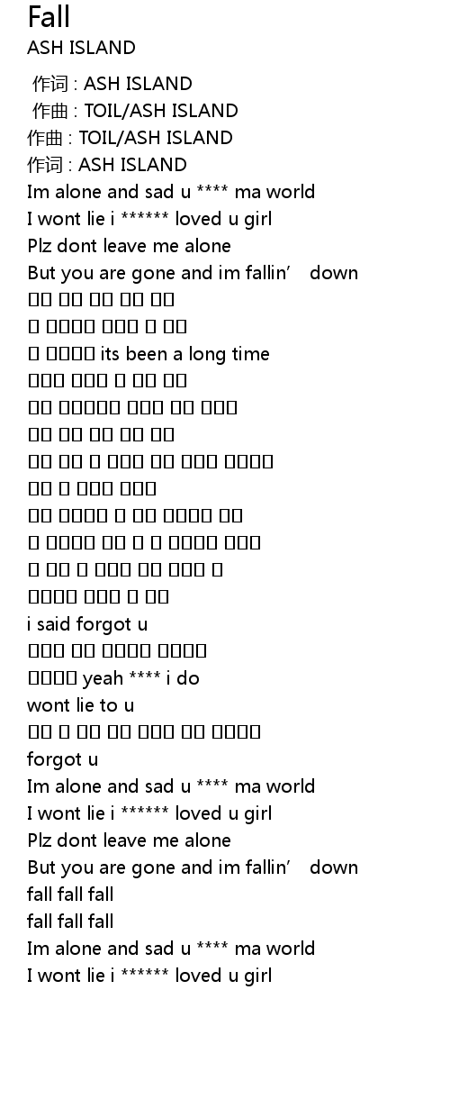 | [00:00.000] | 作词 : ASH ISLAND |