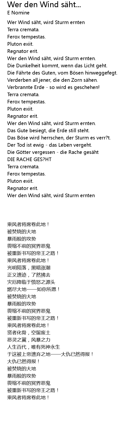 | [00:31.29] | Wer den Wind säht, wird Sturm ernten. |