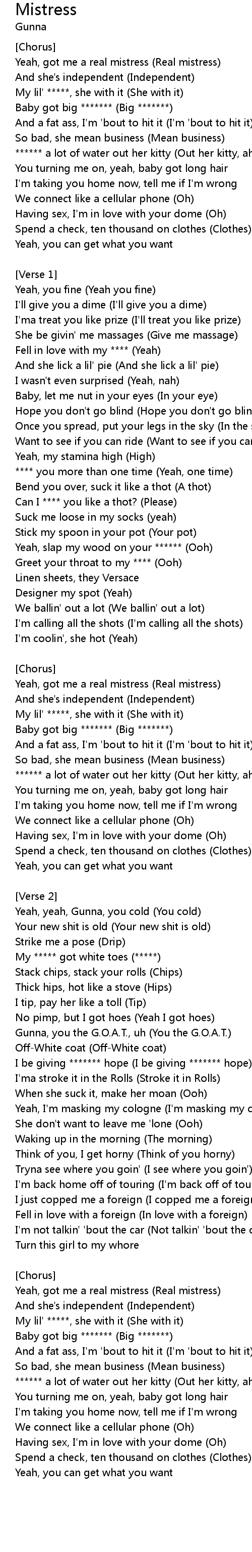 Yeah, got me a real mistress (Real mistress) |