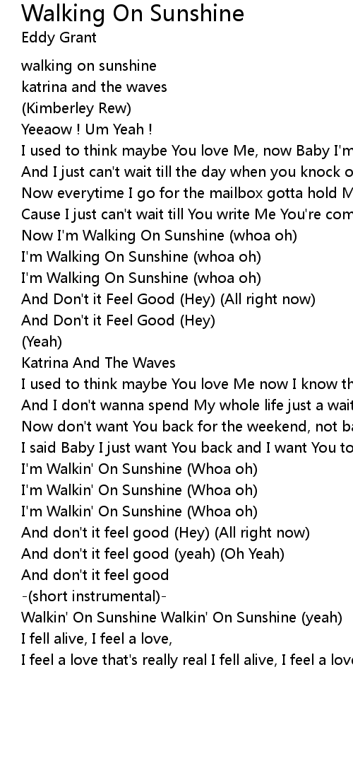 Walkin' On Sunshine Walkin' On Sunshine (yeah) |