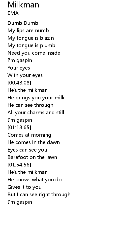 | [00:50.70] | He's the milkman |