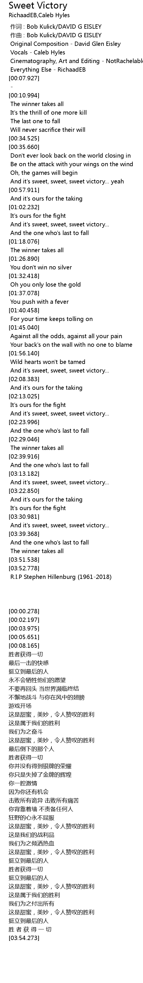 | [00:51.135] | And it's sweet, sweet, sweet victory... yeah |
