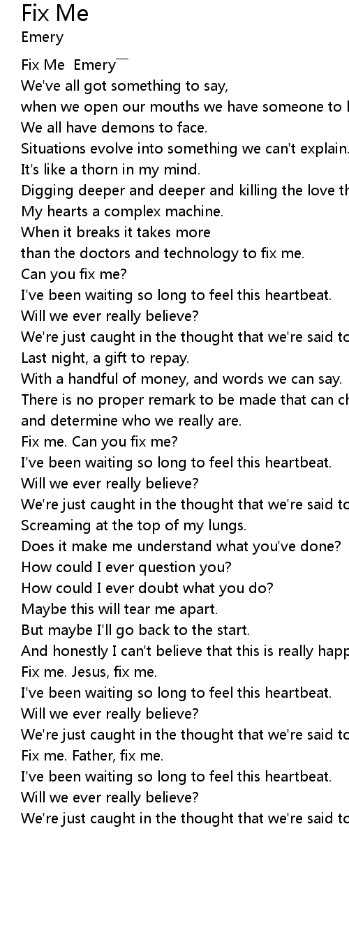 | [00:00.95] | Fix Me Emery |