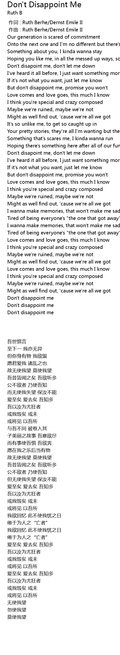 | [01:33.41] | Don't disapoint me, don't let me down |