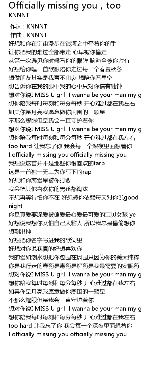 | Song | Officially missing you,too |