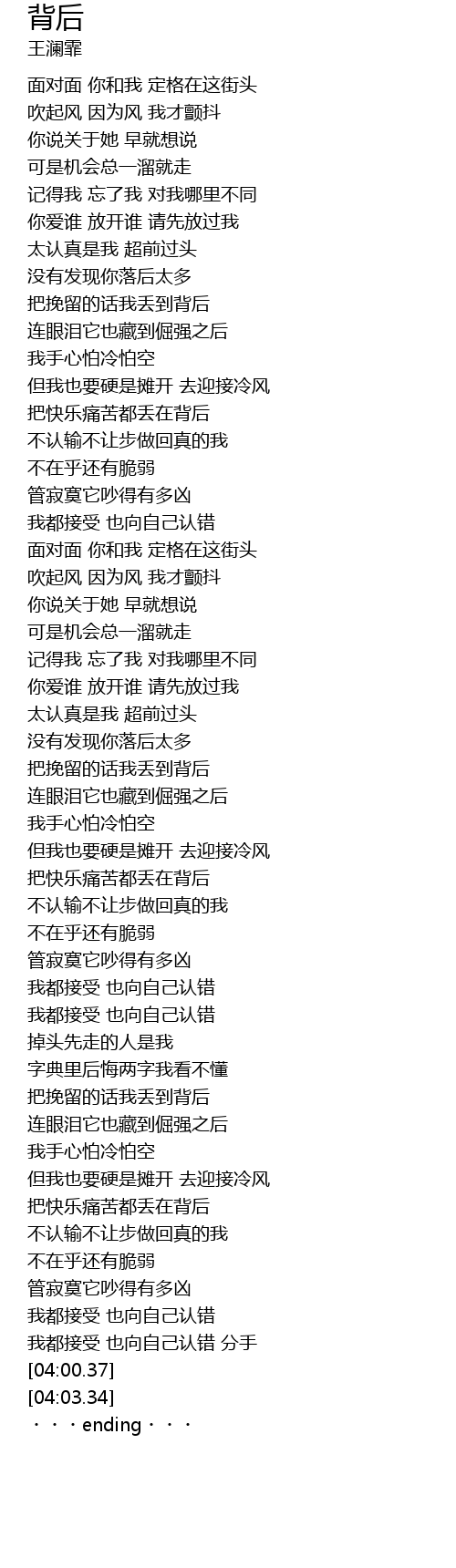 | [03:47.43] | 我都接受 也向自己认错 分手 |