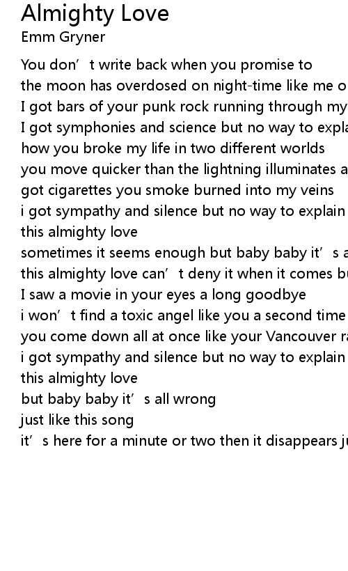 | this almighty love can’t deny it when it comes but baby baby it’s all wrong | |