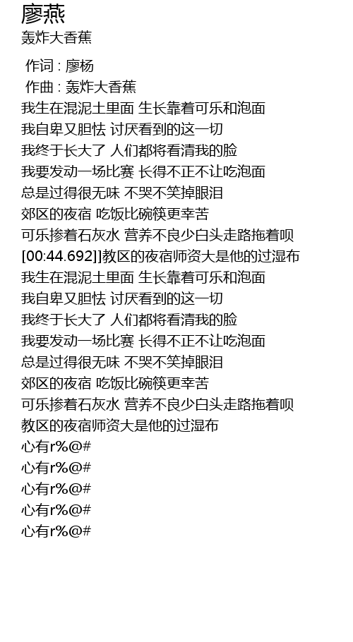 | [02:44.937] | 心有r%@# |