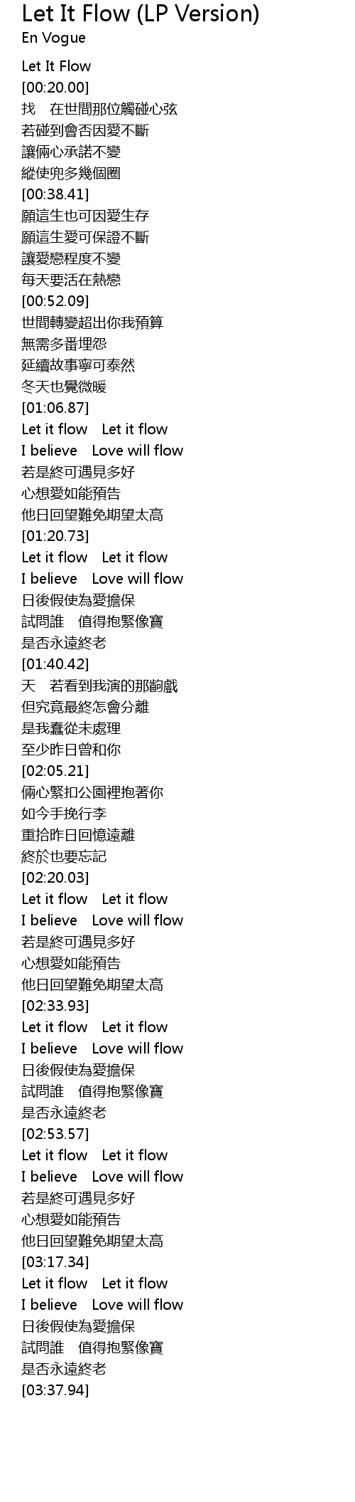 | [03:04.03] | Let it flow Let it flow |