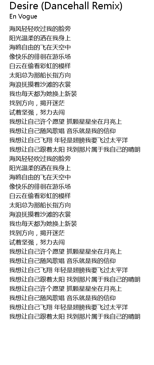 | [03:14.39] | 我想让自己随风歌唱 音乐就是我的信仰 |