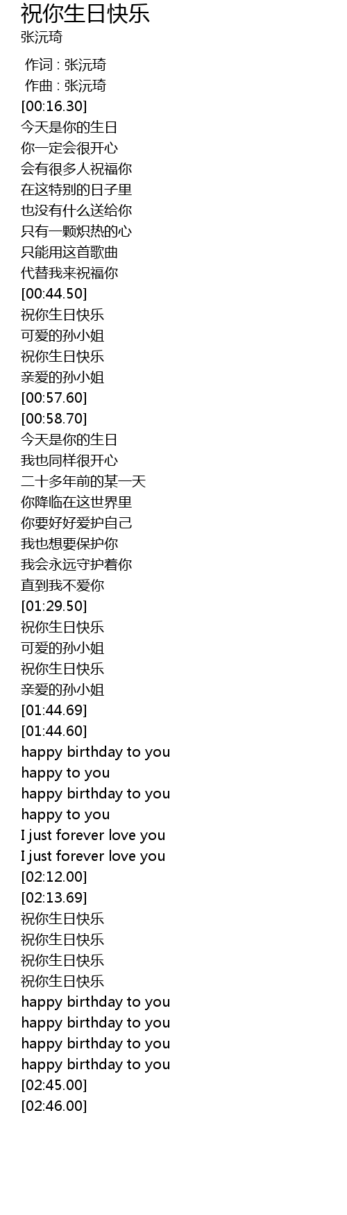 | [00:46.00] | zhu ni sheng ri kuai le |