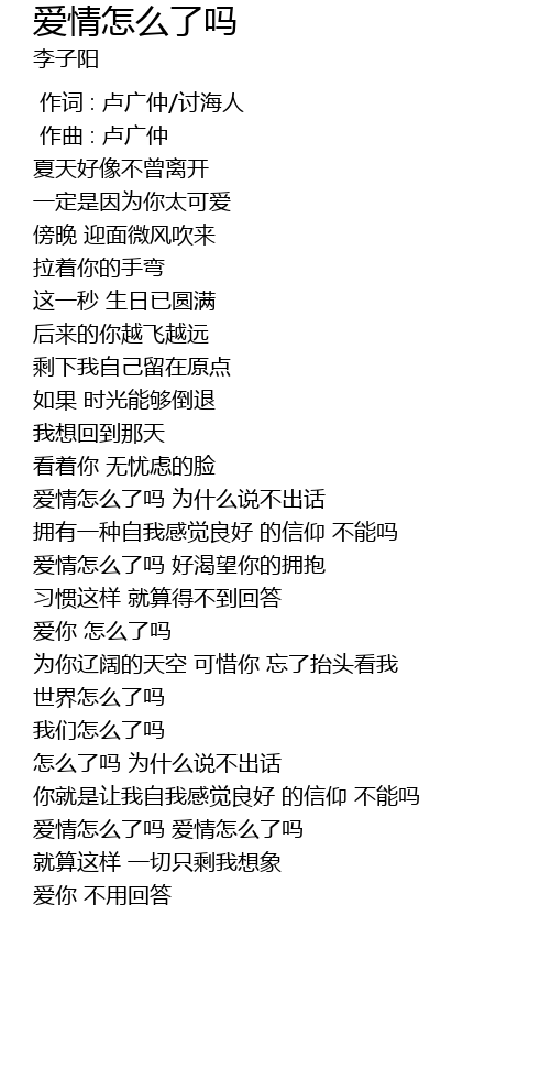 | [03:15.016] | 爱情怎么了吗 爱情怎么了吗 |