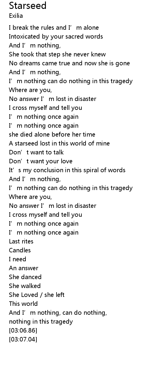 | [00:53.05] | I' m nothing can do nothing in this tragedy |