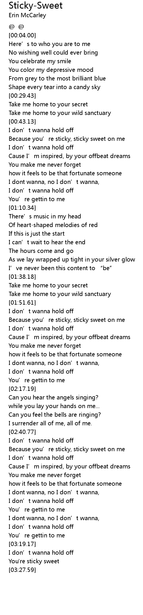 | [00:45.63] | Because you' re sticky, sticky sweet on me |