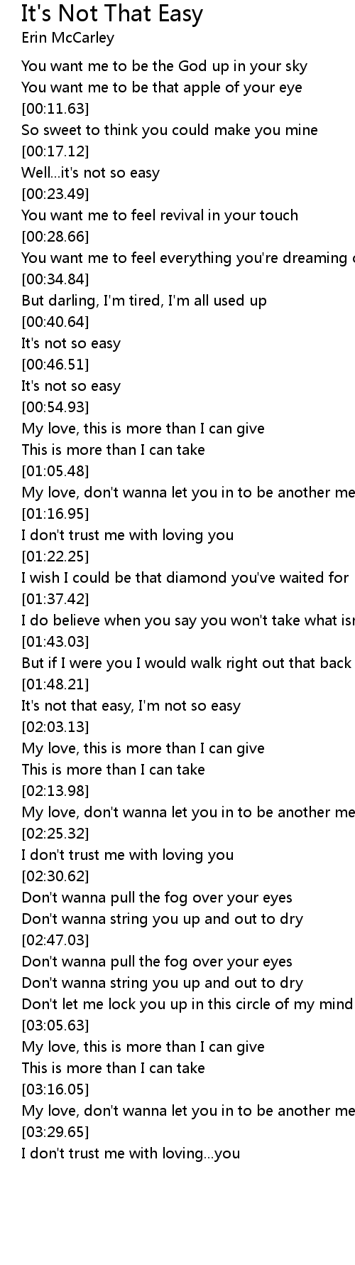 It's not that easy, I'm not so easy |