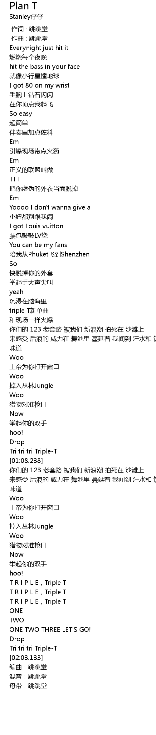 | [00:01.000] | zuo qu : tiao tiao tang |