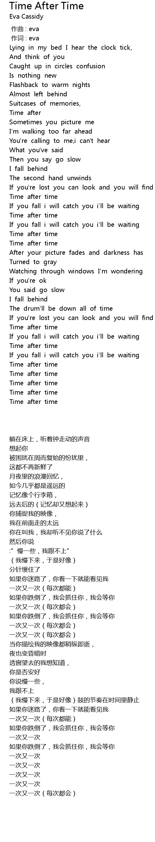 | [03:18.936] | If you fall i will catch you i'll be waiting |