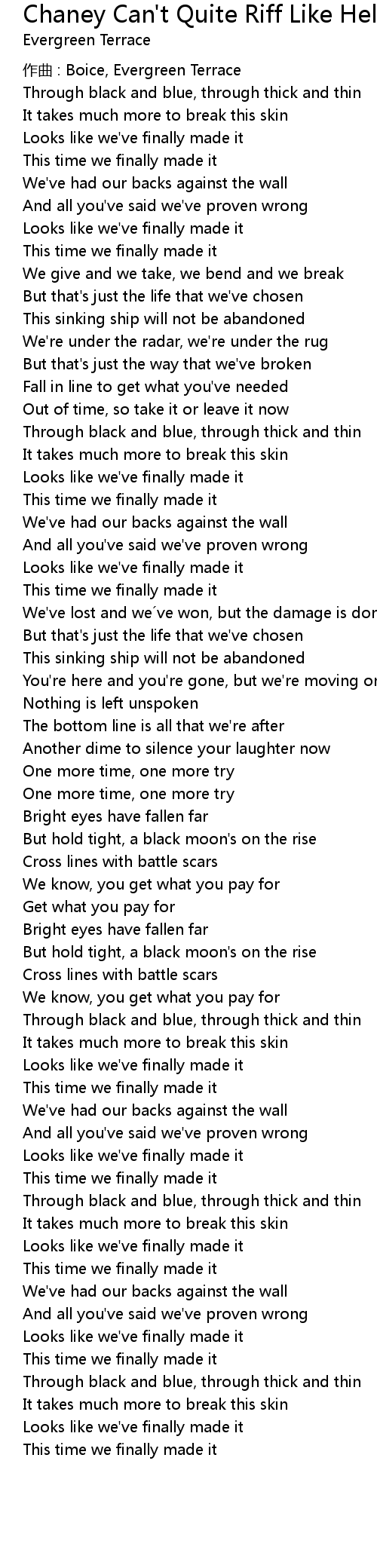 | Song | Chaney Can't Quite Riff Like Helmet's Page Hamilton |