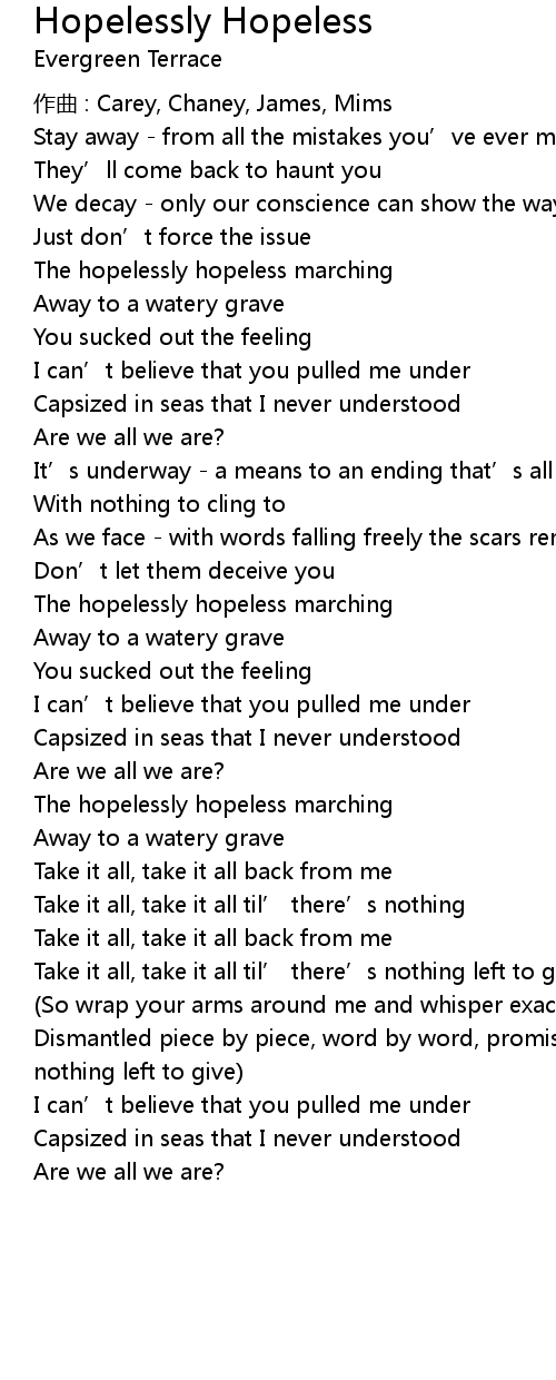 | Song | Hopelessly Hopeless |