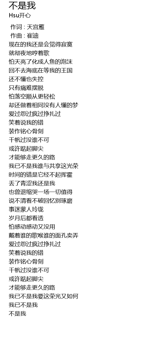 | [00:00.000] | 作词 : 天宫雁 |