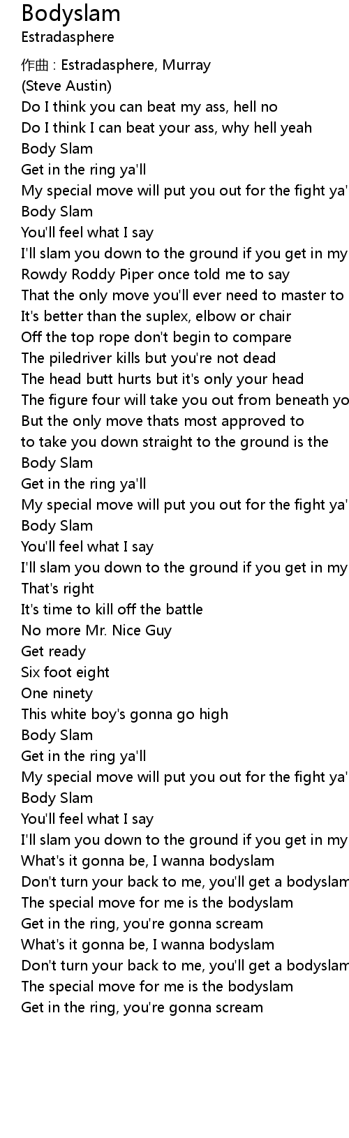 | What's it gonna be, I wanna bodyslam | |