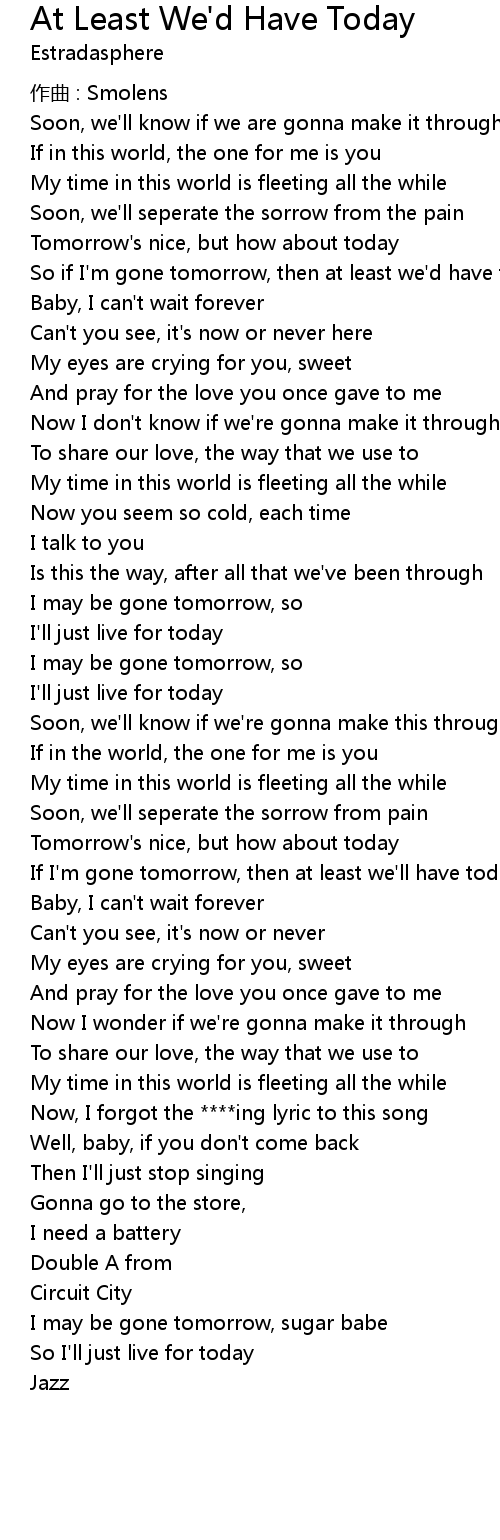 | If I'm gone tomorrow, then at least we'll have today | |