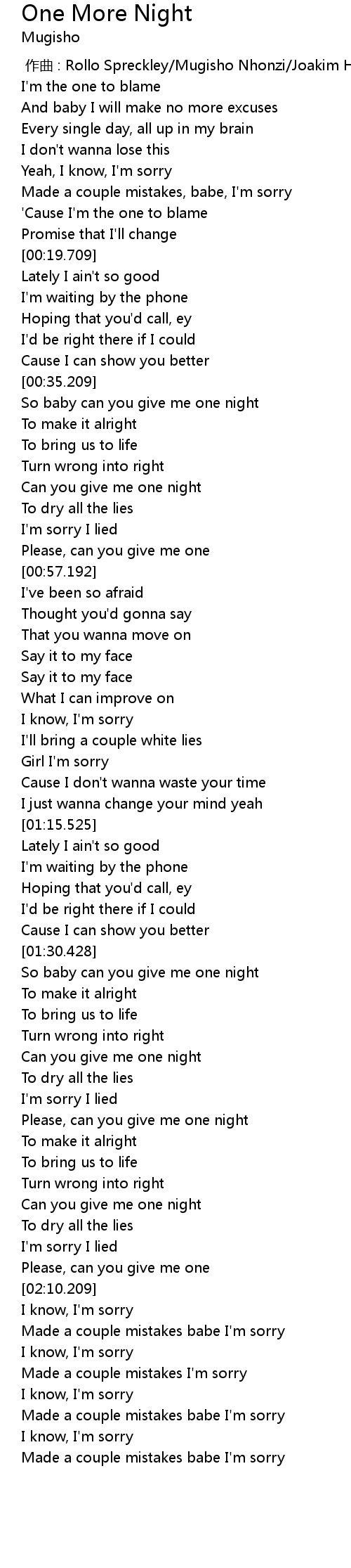 | [00:13.795] | Made a couple mistakes, babe, I'm sorry |