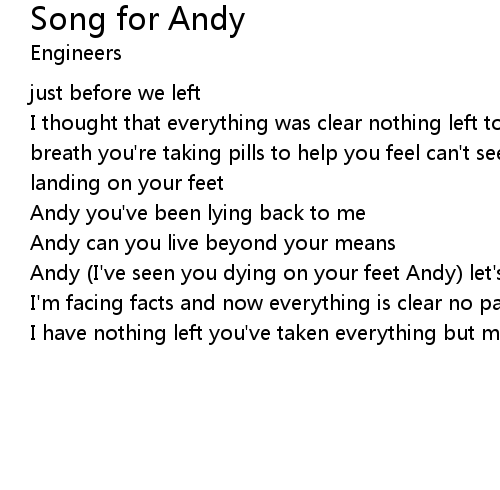 | Andy (I've seen you dying on your feet Andy) let's go our separate ways now | |