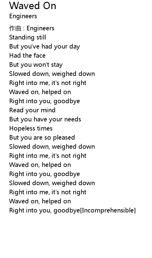 | Right into you, goodbye Incomprehensible |