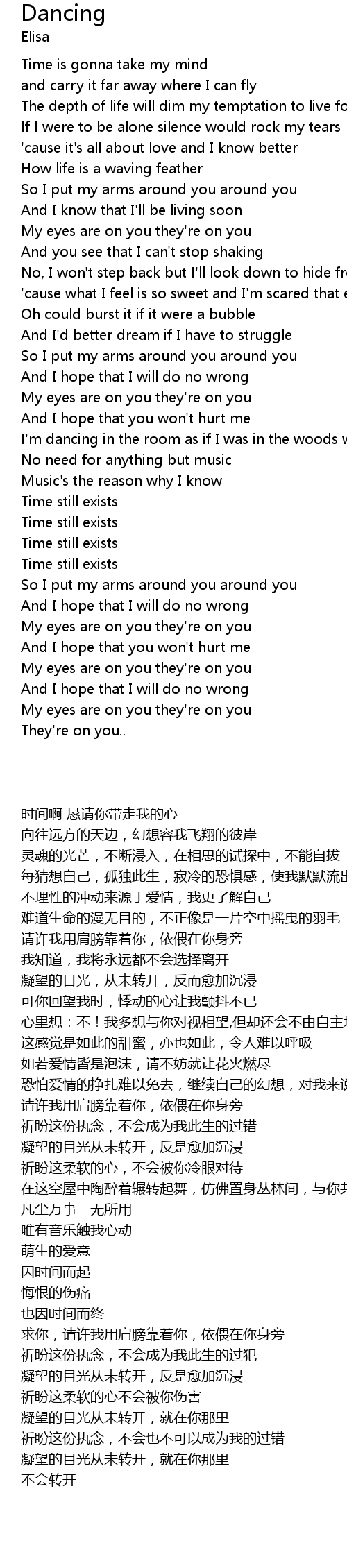 | [03:42.81] | I'm dancing in the room as if I was in the woods with you |