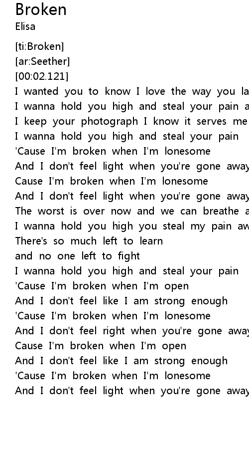 | [02:03.300] | 'Cause I'm broken when I'm open |