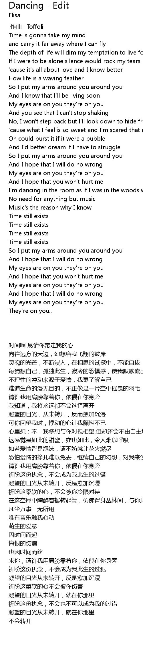 | [03:42.81] | I' m dancing in the room as if I was in the woods with you |