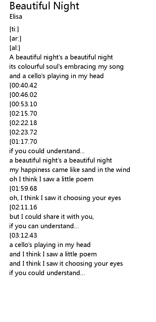 | [01:32.07] | a beautiful night' s a beautiful night |