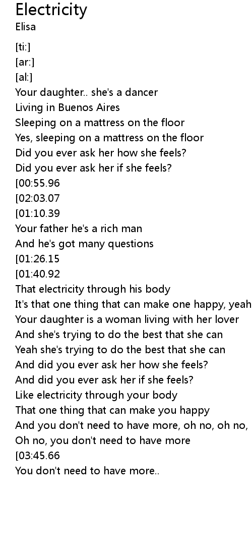 | [03:05.29][00:55.96] | Electricity through her body |