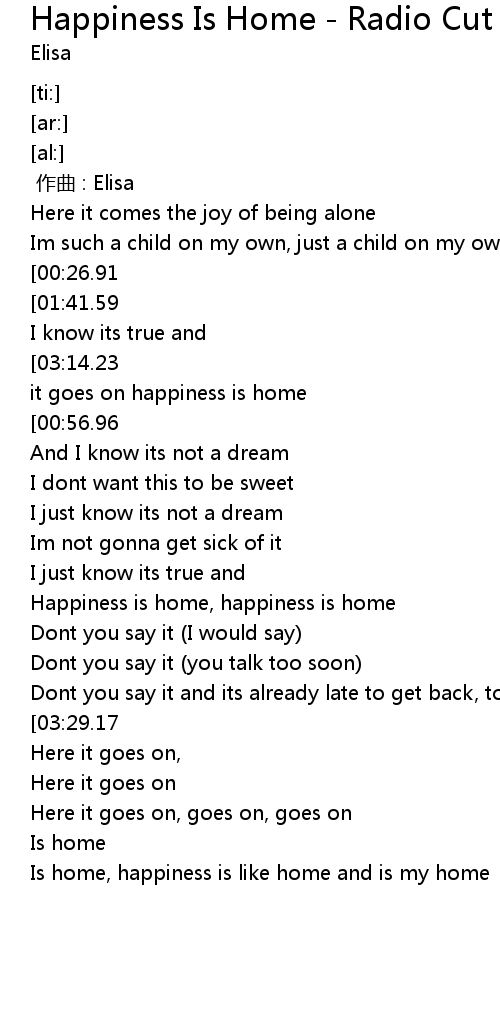 | [04:28.16] | Is home, happiness is like home and is my home |