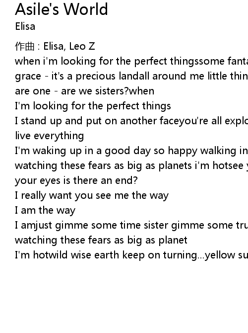| when i' m looking for the perfect thingssome fantasies they save me with the grace it' s a precious landall around me little things are shining like they are one are we sisters? when | |