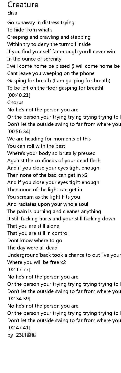 | [00:31.59] | Gasping for breath (I am gasping for breath) |