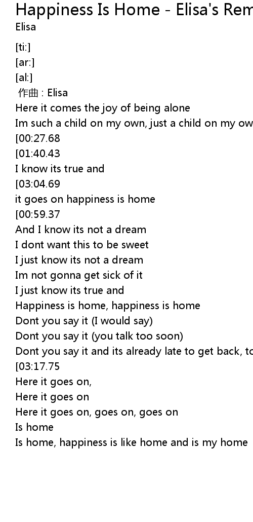 | [03:54.44] | Is home, happiness is like home and is my home |