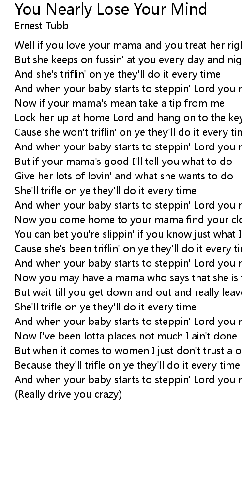 And when your baby starts to steppin' Lord you nearly lose your mind |