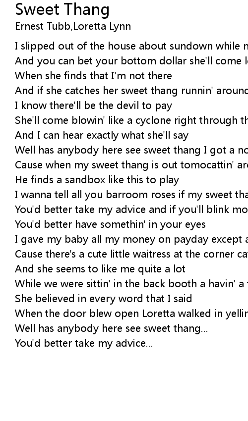 Well has anybody here see sweet thang I got a notion he'll be headed this a way