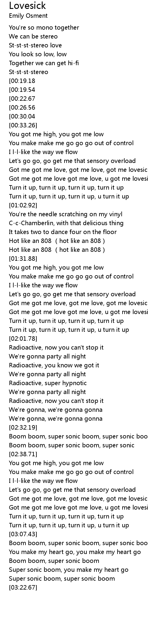 | [01:47.72] | Got me got me love, got me love, got me lovesick |