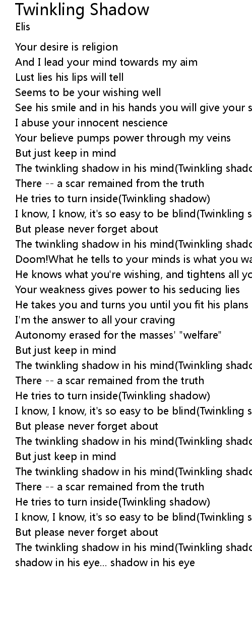 | The twinkling shadow in his mind(Twinkling shadow)... shadow in his eye... shadow in his eye... shadow in his eye |