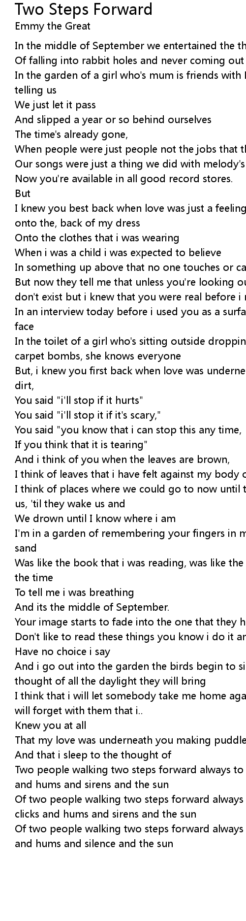 Of two people walking two steps forward always to the lives they've chosen, clicks and hums and sirens and the sun |