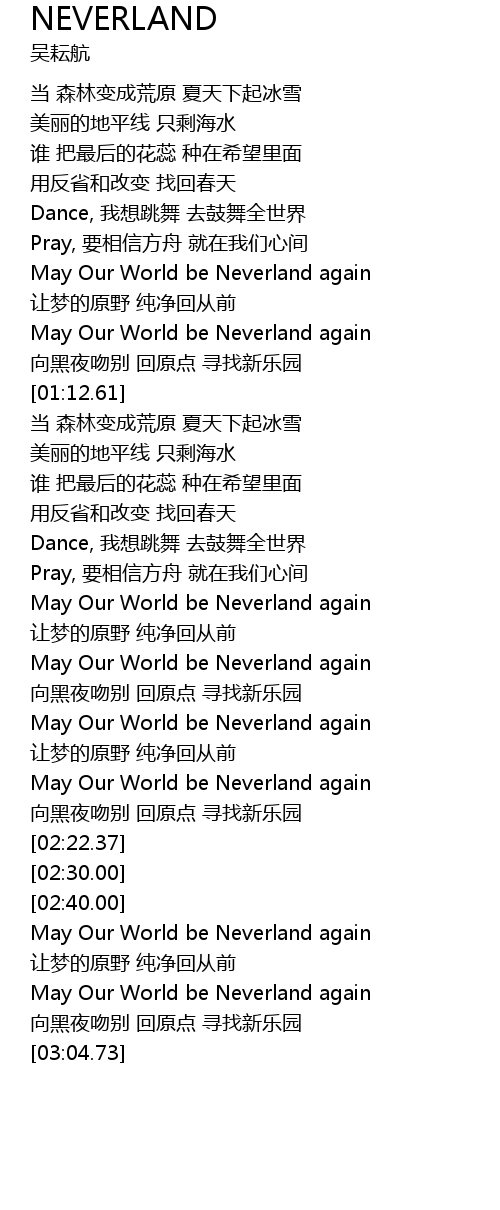| [02:54.72] | May Our World be Neverland again |
