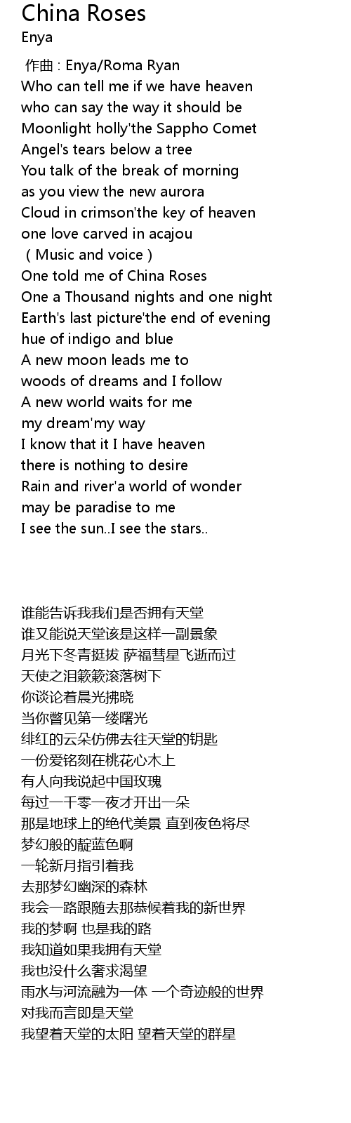 | [00:00.00] | 作曲 : Enya/Roma Ryan |