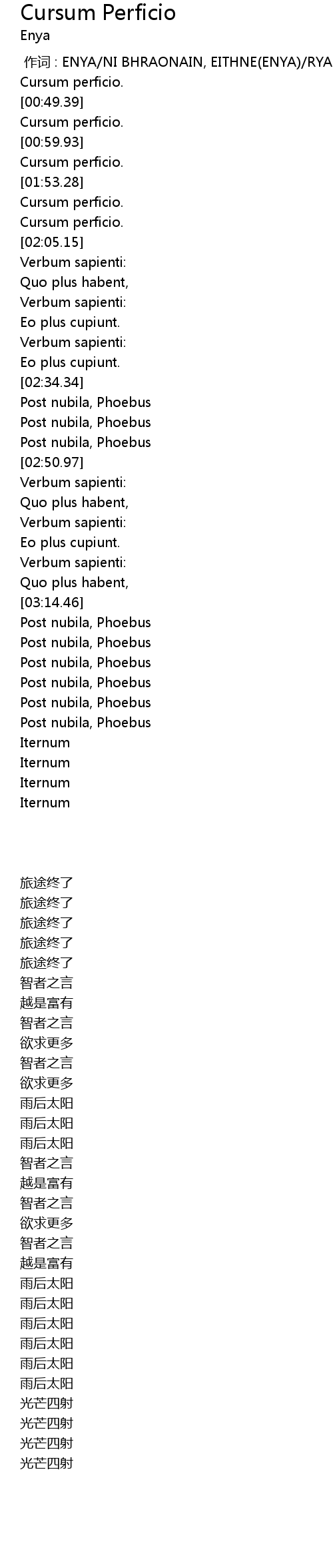 | [03:32.64] | Post nubila, Phoebus |