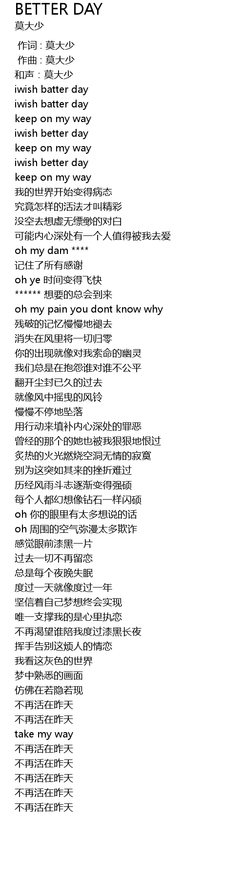 | [02:38.992] | bù zài huó zài zuó tiān |